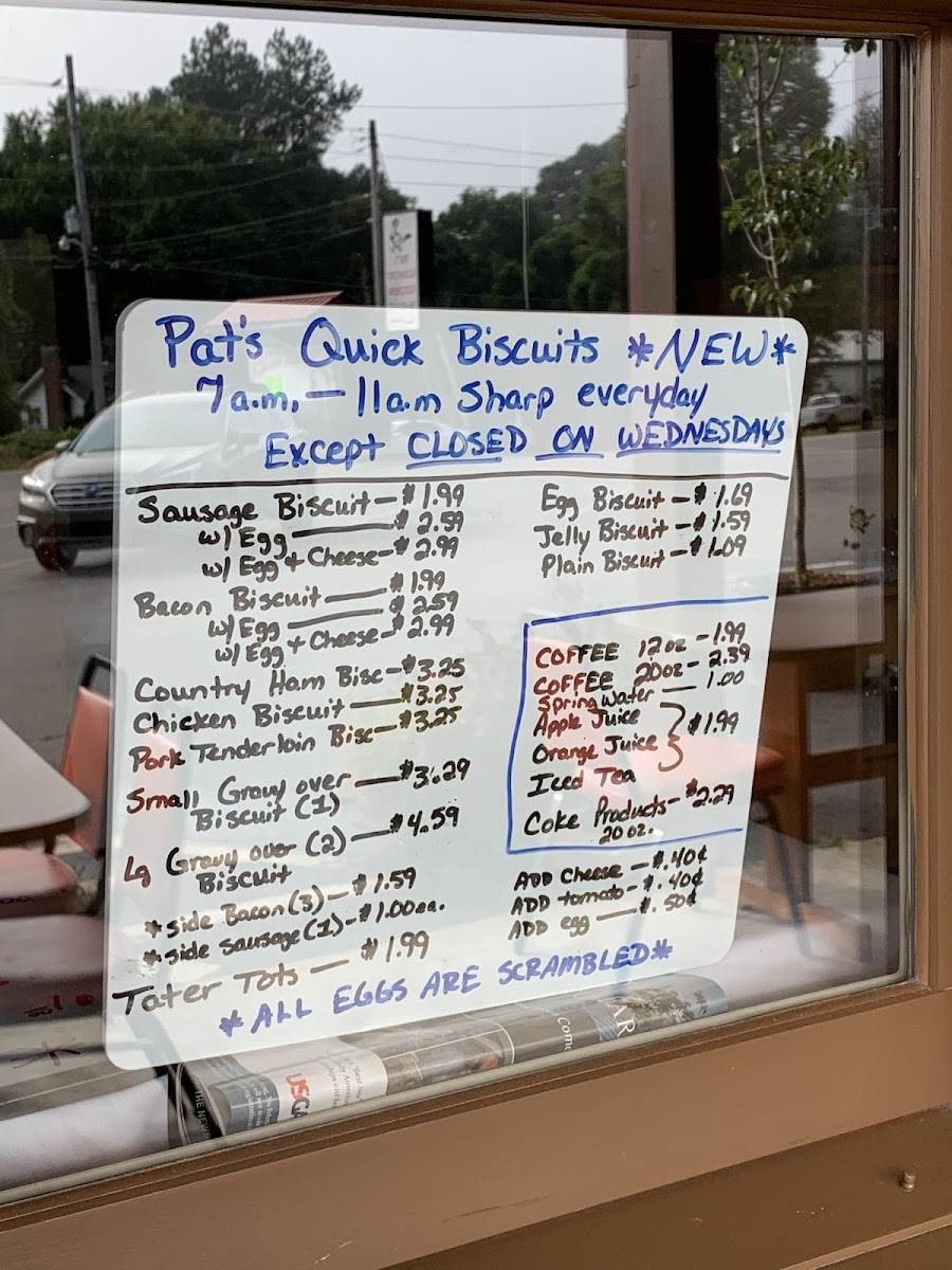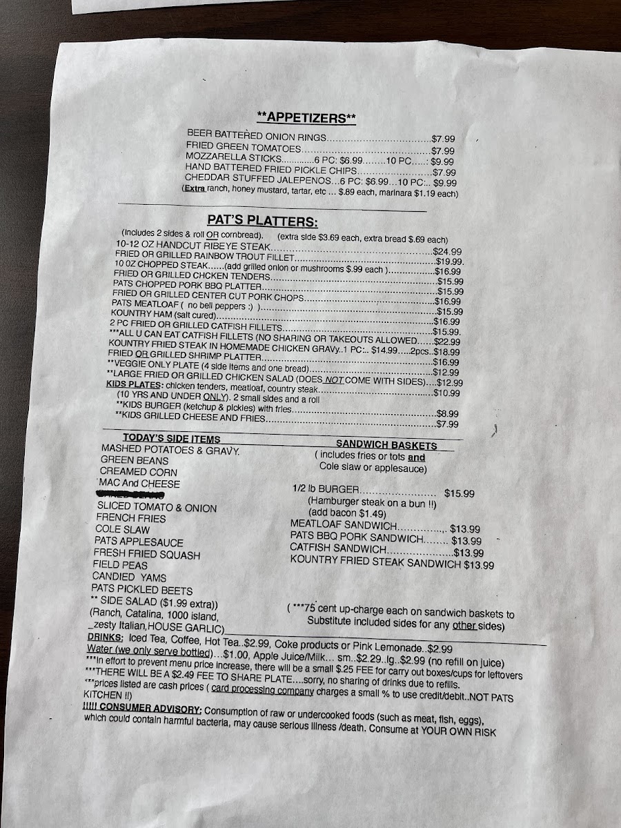 Pat's Kountry Kitchen Menu
